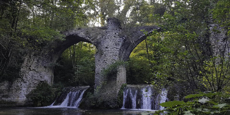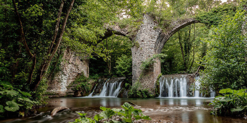 Per arrivare al Ponte dell’Intagliata, bisogna scendere da Cingoli in direzione Lago di Castreccioni, appena passato il Ponte sul Musone, si svolta a destra in direzione del Parco Avventura, oltrepassarlo per circa 800 mt., nei pressi di una piazzola di sosta con una lapide, si posteggia. Dopo una recente riqualificazione del sito, proprio davanti la piazzola, è stata fatta una strada sterrata che si immette nel vecchio sentiero, in circa 10 minuti, seguendo la segnaletica, si arriva al Ponte Romano. Il ponte, costruito in epoca medievale, faceva presumibilmente parte di un sistema fortificato che si trovava in questo tratto del fiume Musone, forse zona di confine tra il fronte longobardo e le pertinenze bizantino-ravennati. Vicino, si trovano importanti resti di un antico mulino, si intravedono resti di cunicoli e di uno sbarramento sul torrente che alimentava il Mulino stesso. A valle del Ponte, si trovano altri tre mulini, mi sembra che tutti e tre appartenevano ed appartengono, alla famiglia Bravi, storica famiglia di mugnai di Cingoli. Il primo si trovava presso le Cascatelle di Cingoli, adesso dismesso, il secondo in località Molino, le prime notizie dell’esistenza del molino risalgono addirittura al 1565. Sembra che un tempo quella fosse la sede di una vera e propria industria dove oltre al mulino c’era una polveriera,(fabbrica di polveri piriche) un frantoio e anche una segheria. Sempre alcuni documenti storici indicano quale proprietario del molino nel 1856 l’industriale Filippo Pasqualini le cui iniziali sono visibili ancora oggi sulle tavole delle macine. La proprietà passò poi al Marchese Ferdinando Mattioli Pasqualini e poi alla famiglia Bravi, il terzo, dismesso, ma intatto nella sua struttura, si trova di fronte la chiesa delle Valcarecce.
